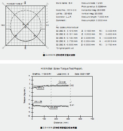 HIWIN採用最佳的牙型設計係數(形狀係數)及專業製造技術達成最佳真實牙型。且HIWIN使用牙型測量設備,來 監測每一製程中的牙型。如此可確保符合設定之扭力范圍。圖2.4為一檢測的實例。