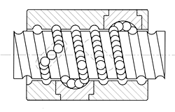 此種型式是兼具外循環滾珠絲桿及內循環滾珠絲桿特點,在鋼珠滾動于螺桿與螺帽之間的溝槽而前進,在螺帽的尾端田端蓋循環器導引至螺帽本體的迴流孔中,一般與外循環相同為多倦鋼珠一次循環,只是少了外循環管。