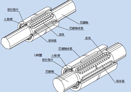 ? 同時(shí),即使代替直線滾珠襯套使用時(shí),因在軸徑相同的情況下,滾珠花鍵所具有的額定負(fù)荷是線性襯套 的十幾倍,所以能使宣十輩得十分小巧。即使在憨臂負(fù)荷、力矩等作用的情況下,也可安全使用,而且壽命長。