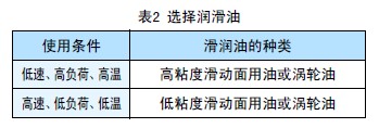 建議對(duì)梯型絲杠采用油潤(rùn)滑, 特別是油池潤(rùn)滑或滴油潤(rùn)滑法更有效。油池潤(rùn)滑是最適當(dāng)?shù)姆椒? 因?yàn)檫@種方法可以滿足苛刻的條件, 例如高速、重負(fù)荷或外部熱傳遞, 并且使梯型絲杠冷卻。滴油潤(rùn)滑適合于中低速度和中輕負(fù)荷的情況。請(qǐng)根據(jù)表2中顯示的條件選擇潤(rùn)滑油。