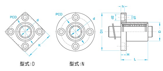 ①。支撐座有8個型號,對標準滾珠螺桿庫存品的軸端、成品,預備了標準化的支撐座EK、EF、FK、FF 型,對一般滾珠螺桿預備了標準支撐座AK、AF、BK、BF 型。固定側裝有經預壓調整的JIS5 級或P0 級的角接觸滾珠軸承,可依選用螺桿等級做最符合經濟的搭配高精度穩定的回轉性能。
